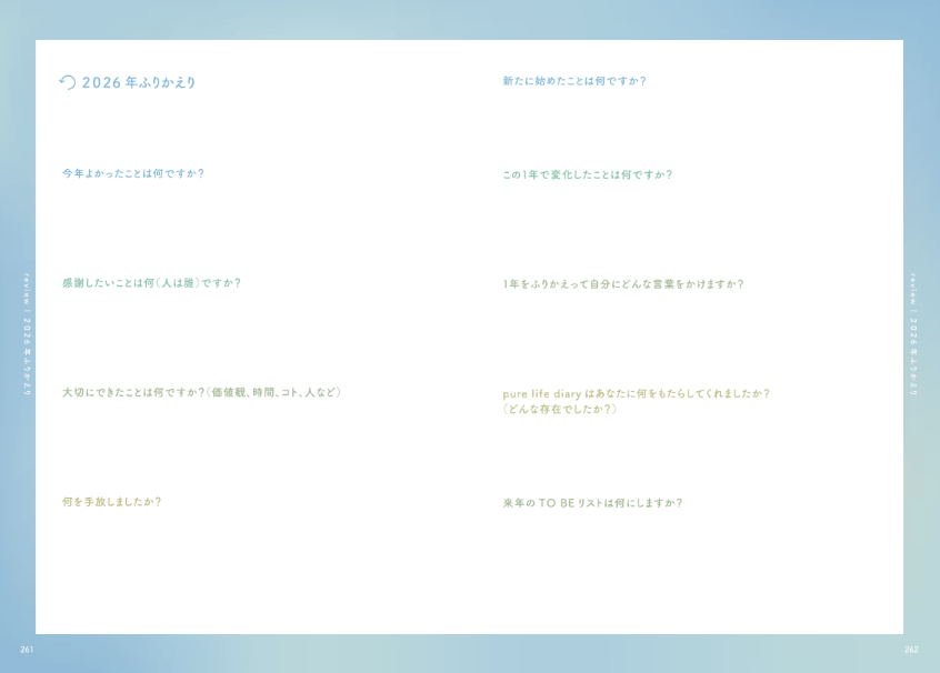 また、pure life diary2026をご購入いただいた方は、毎月のワークショップ・解説動画・LINEでの質問などすべてのサポート体制を「無料」でお届けいたしますので、ぜひご活用ください。